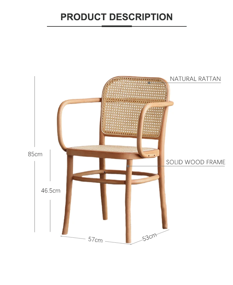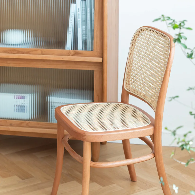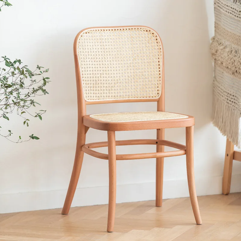 Chaise Bois French Bistro Nordic Solid Wood Cane Back Rattan Dining Chairs