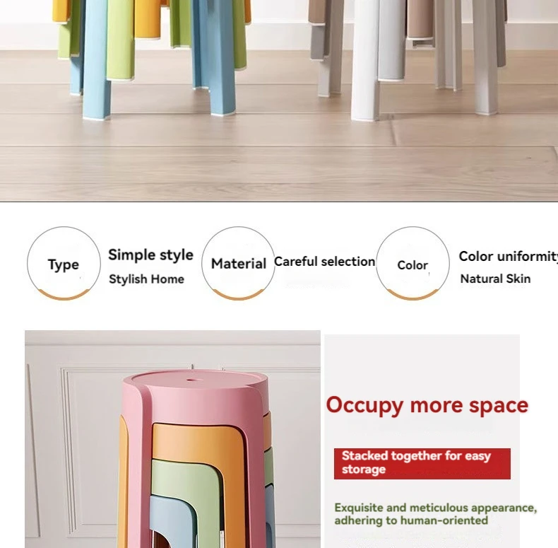 Lightweight Plastic Stool Modern Simple Thickened Household Dining Stool Can Be Stacked Round Stool