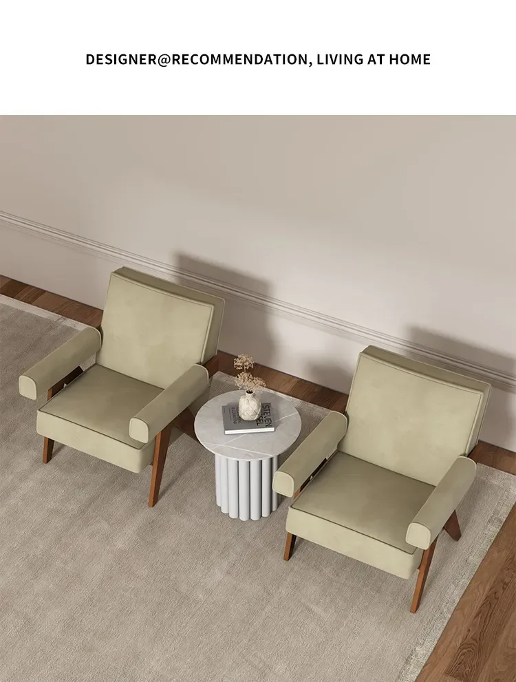DAILY UP Mid-Century Reading Room Accent Chair Upholstered Wooden Lounge Arm Velvet Chair Fabric Single Chair Furniture