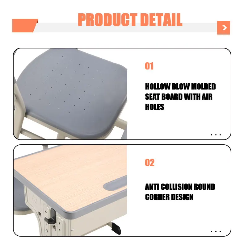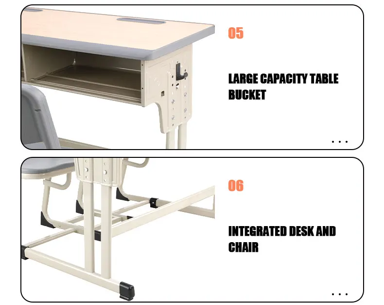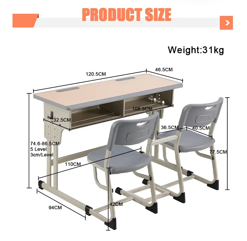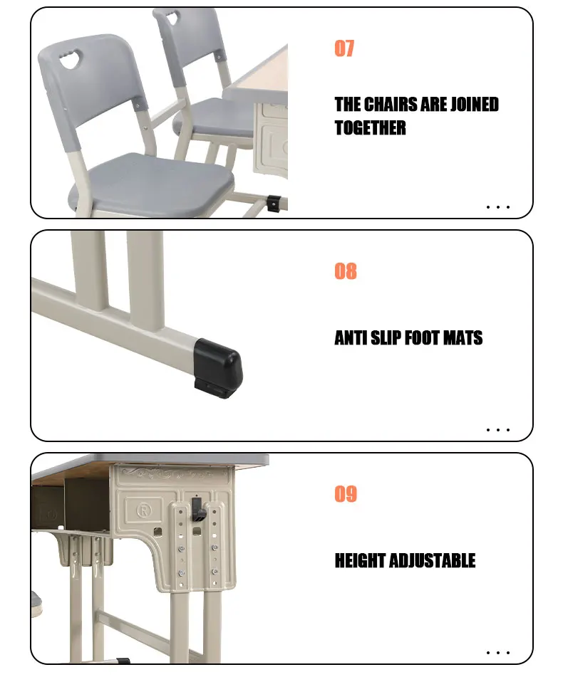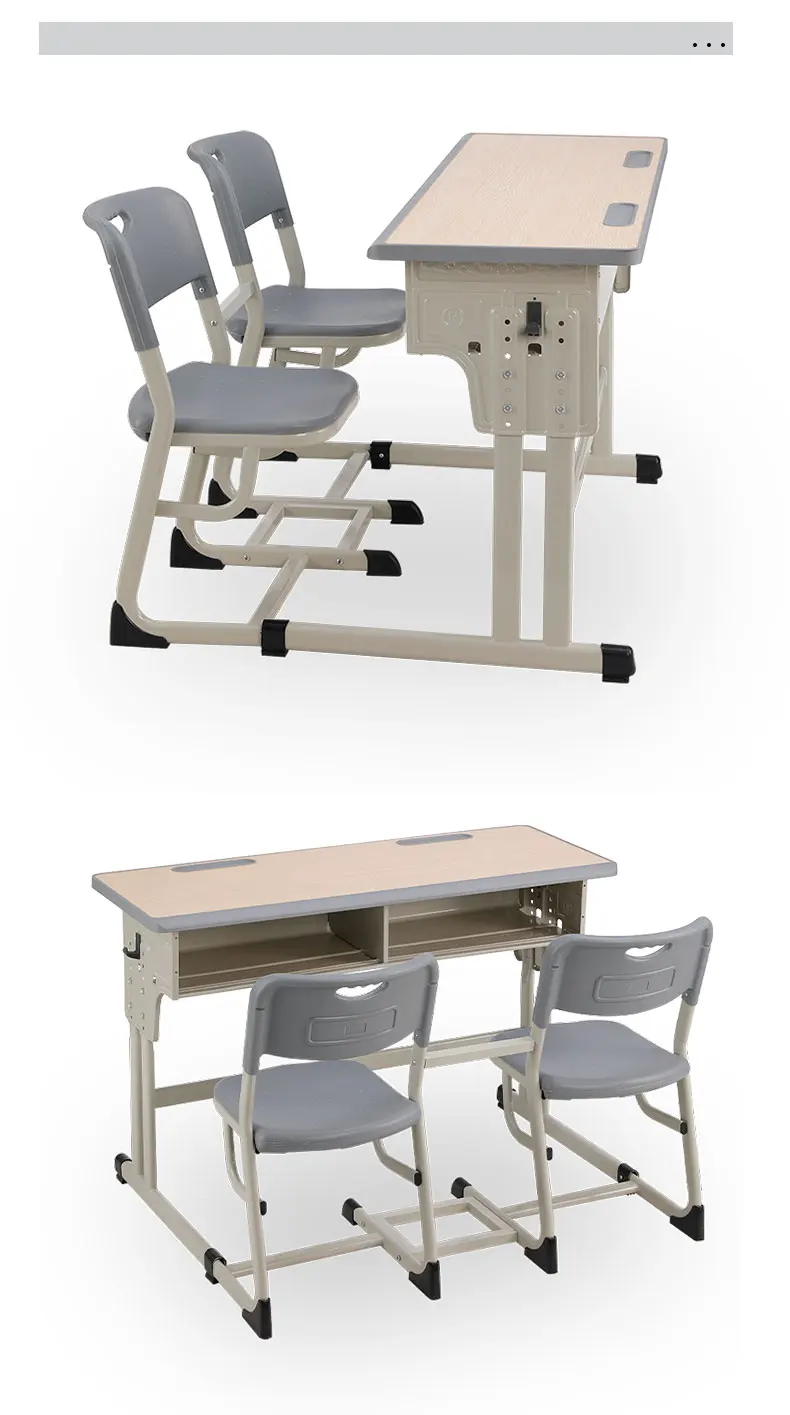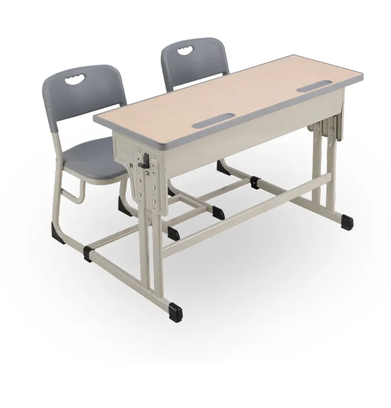 Double Seat Metal Frame School Table and Chair Classroom Furniture Adjustable Student Study Desk and Plastic Chair