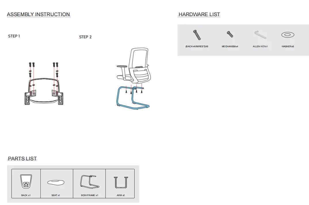 Training chair parts