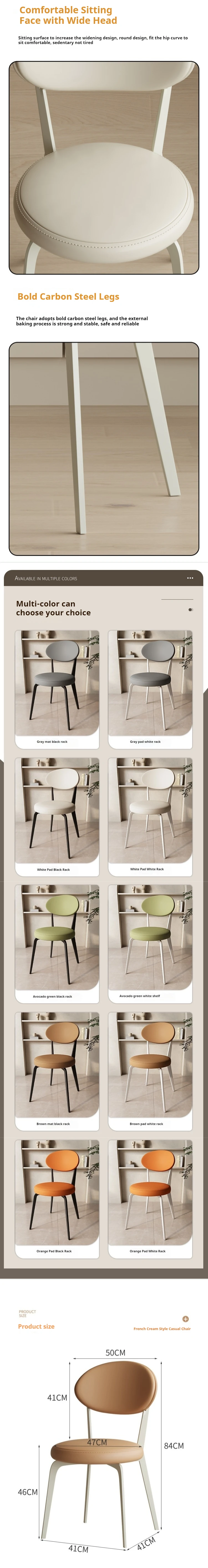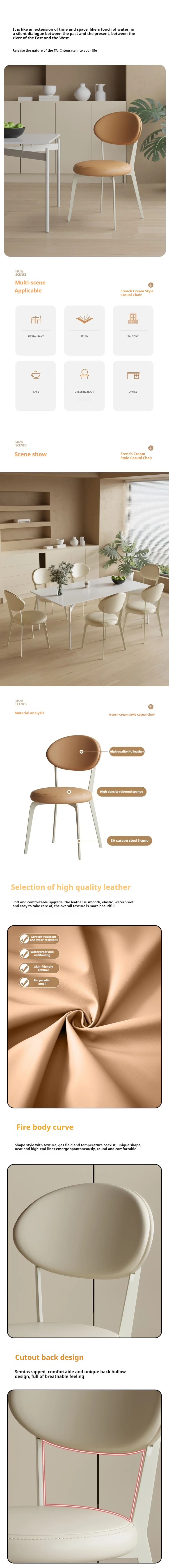French Cream Style Leather Dining Chair Simple Modern Leaning Metal Back Chair Luxury Hotel Chairs Restaurant Furniture
