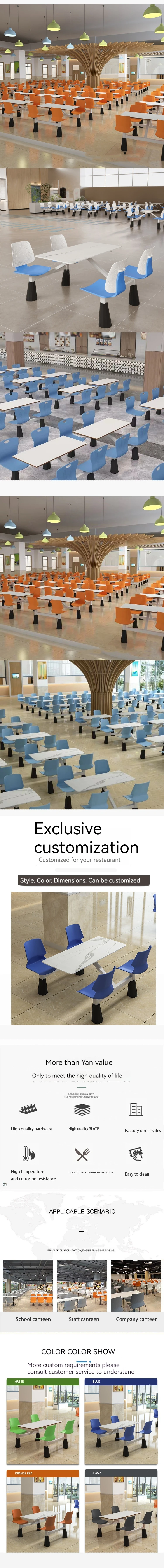 school canteen furniture 4 seaters dining table and chair sets for restaurant Connecting Tables and Chairs