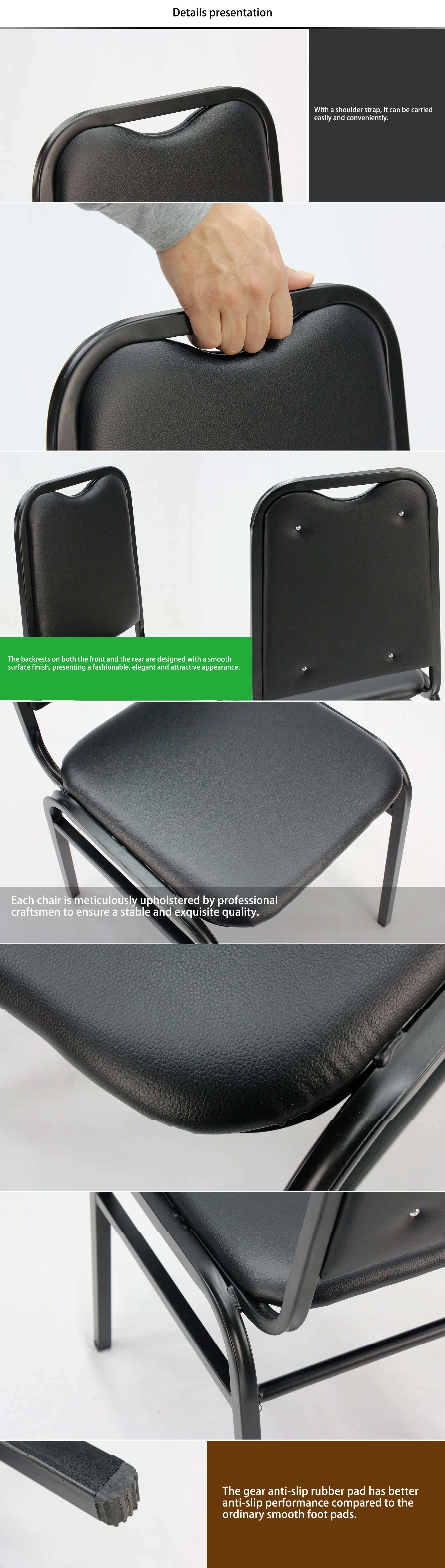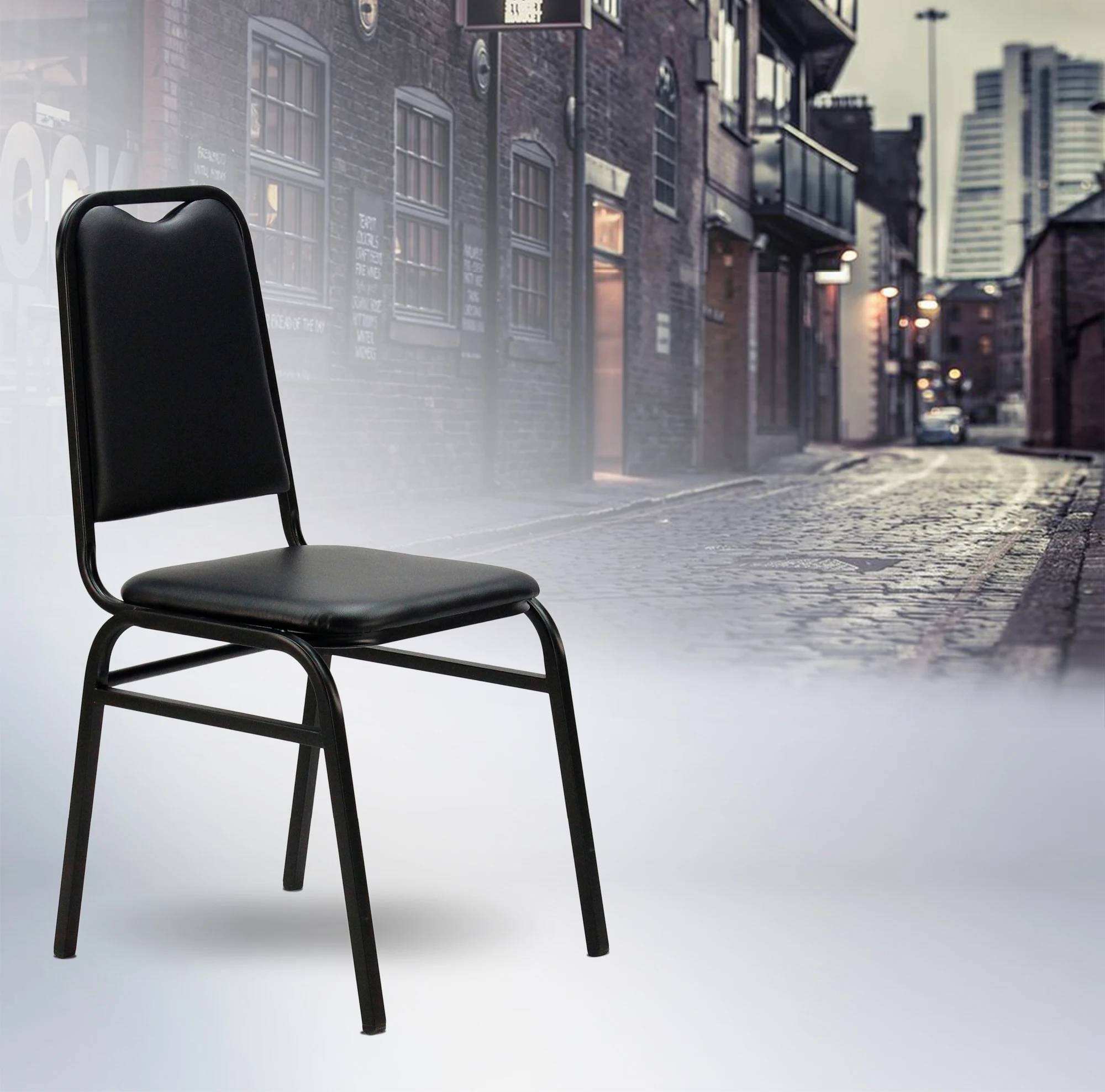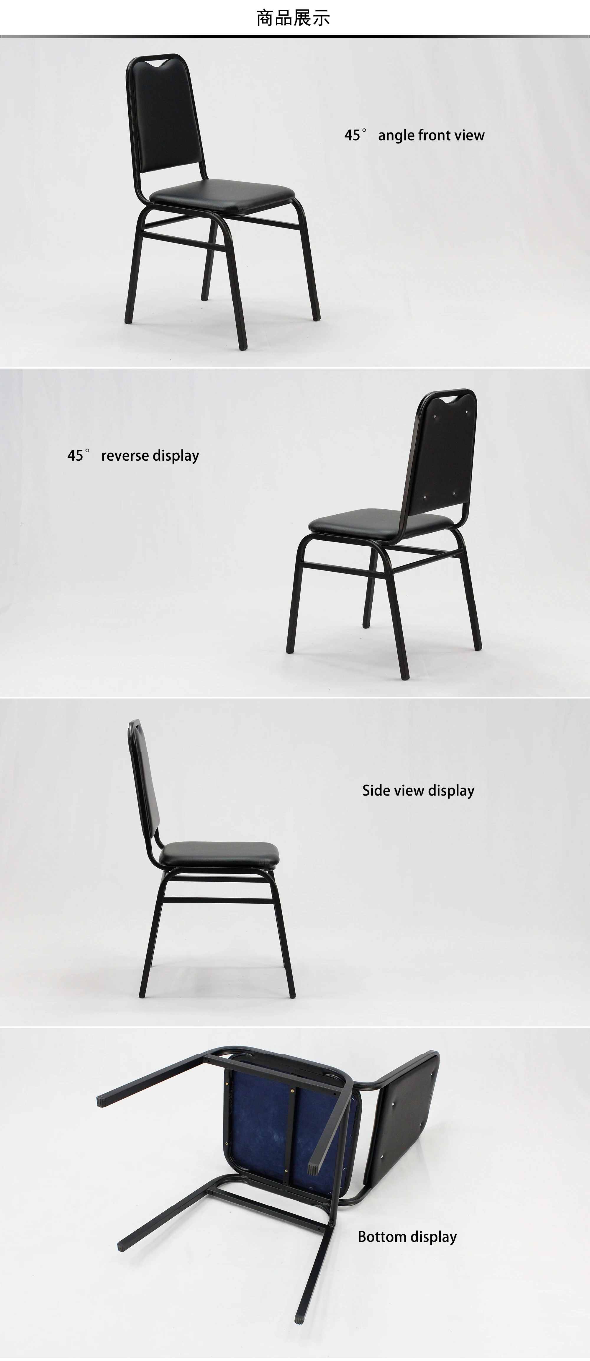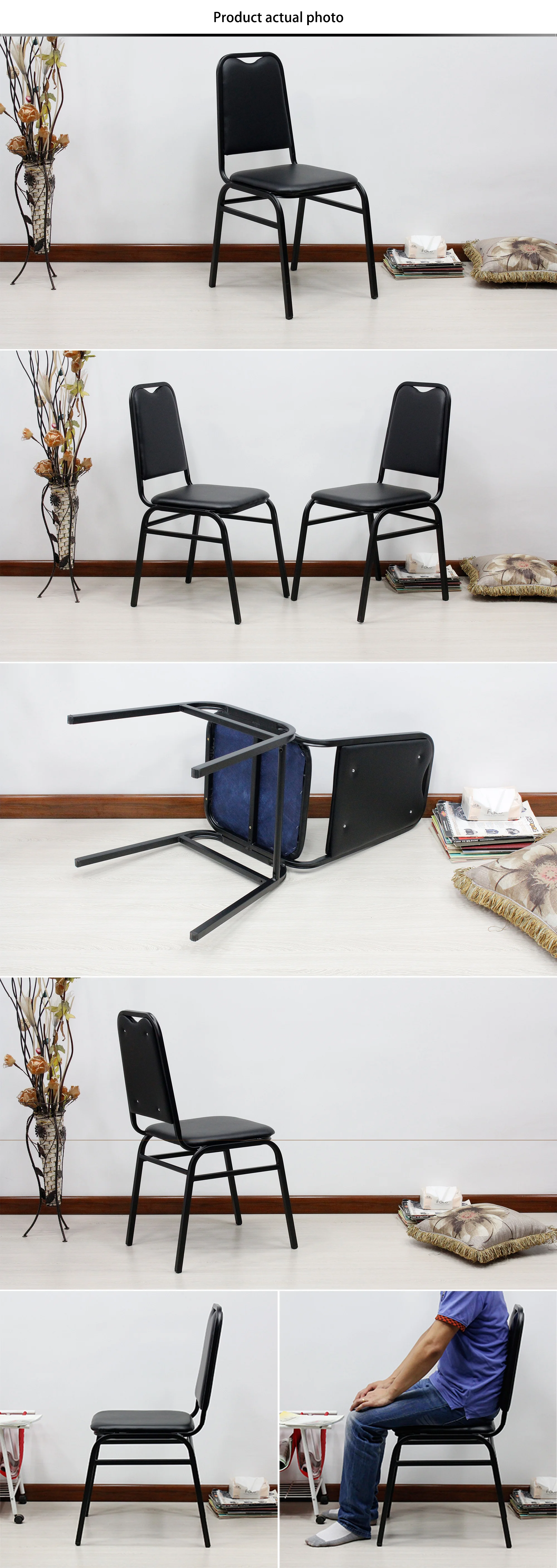 High Quality Modern Black Metal Frame Thick Padded Stackable Banquet Dining Chair