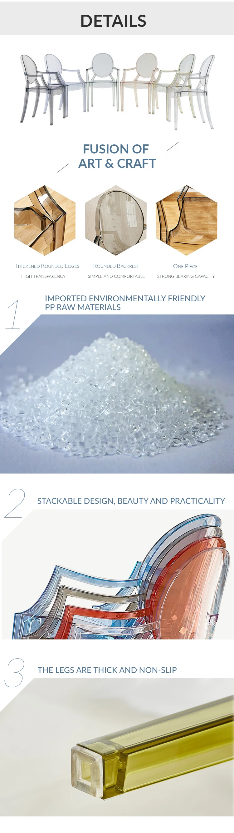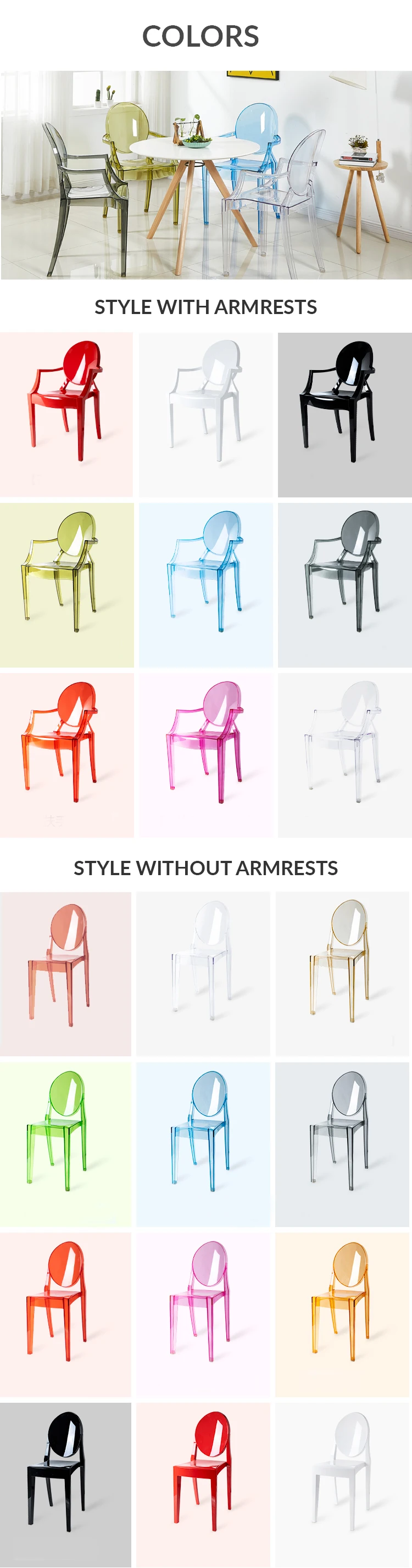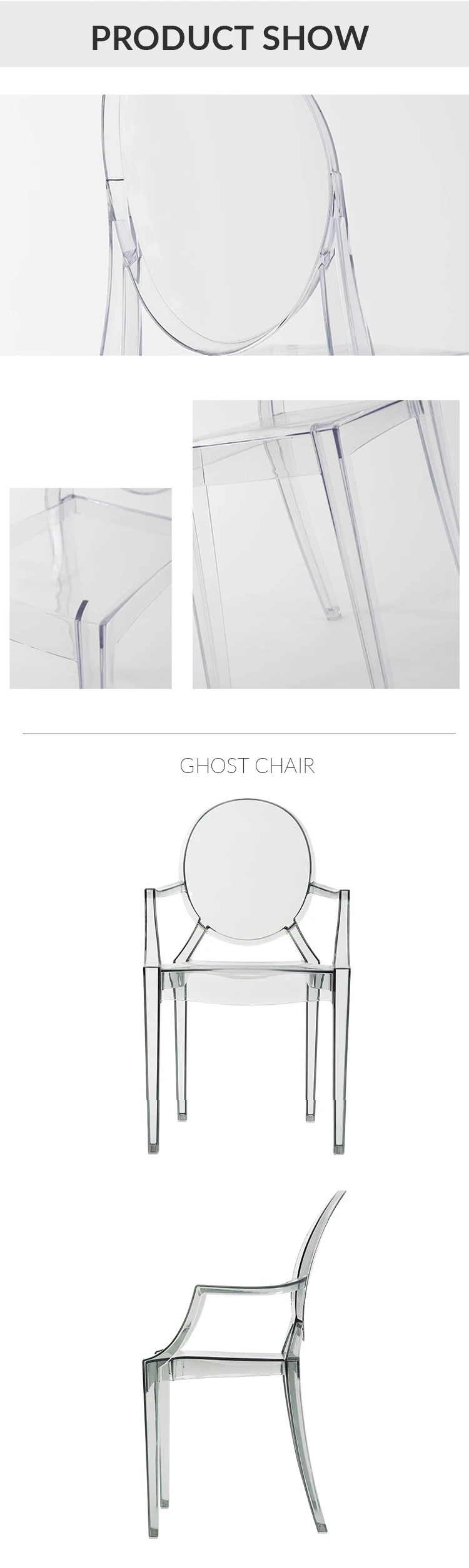 Living Room Modern Plastic Clean Arm Chair Indoor Stackable Crystal Plastic Hotel PP Chair with Armrest