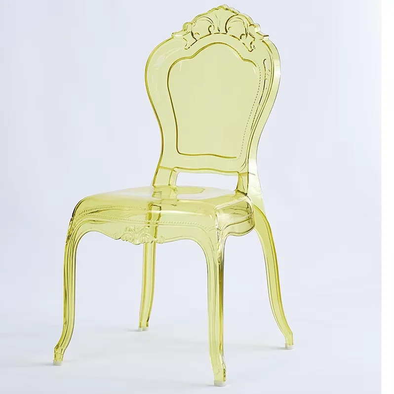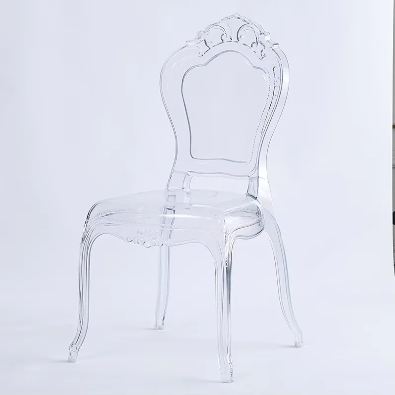 Luxury Pc Royal Clear Crown Backrest Banquet Stackable Wedding Chairs Transparent Acrylic Plastic Resin Hotel Chair for Event