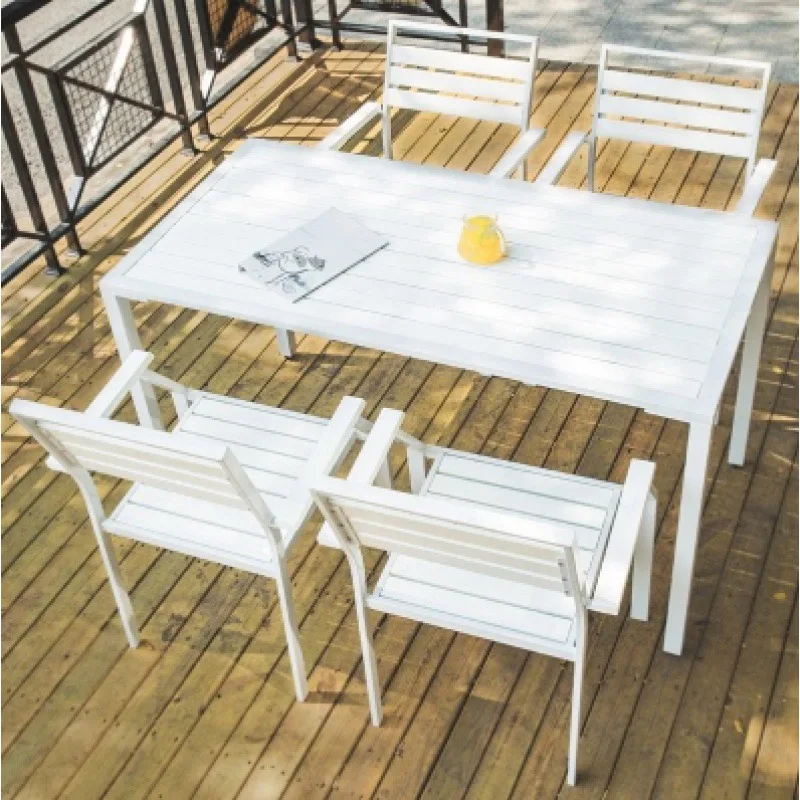 Outdoor Waterproof Rectangular Table and Chairs Set Patio Pool Seaside Leisure Table and Chairs
