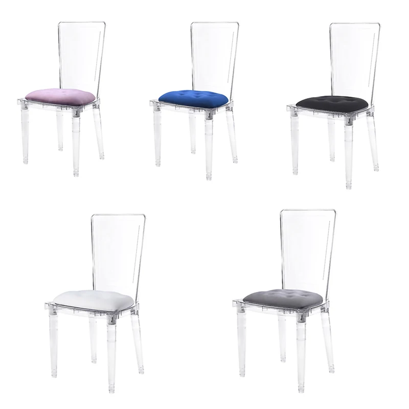 Modern Outdoor With Leather or Velvet Cushion Hotel Dining Room Clear Acrylic Wedding Transparent Acrylic Pc Dining Chair