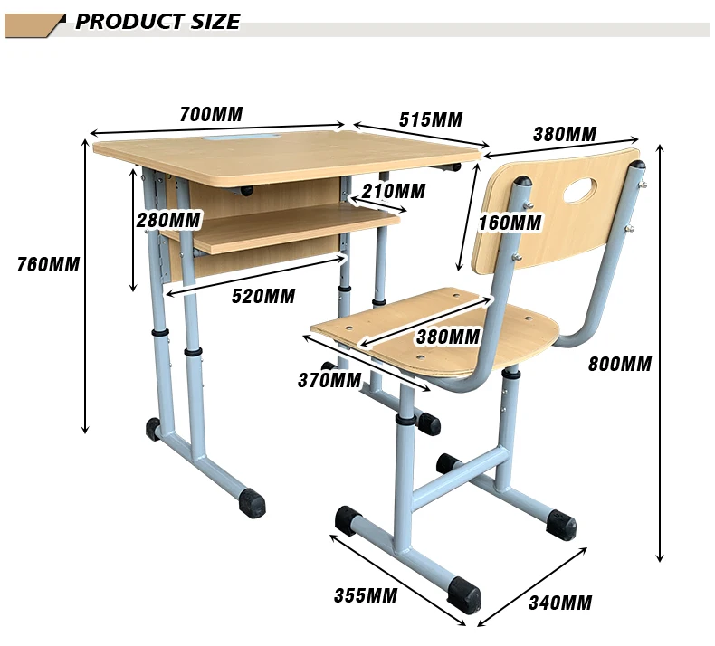 Popular School Furniture in Romania Height Adjustable Classroom Desk and Chair Set Student Tables Training Desk Chair