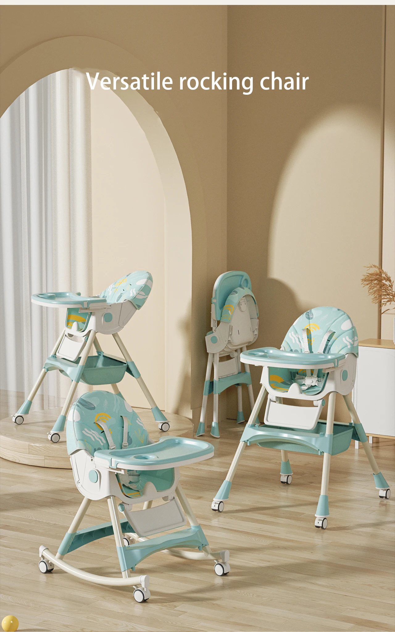 Rocking baby feeding chair 3 in 1 baby feeding portable dining chairs with wheels