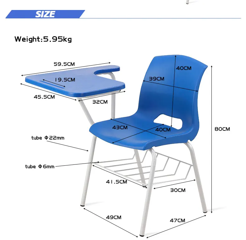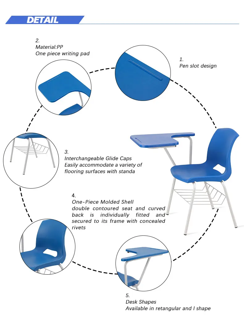 School Furniture Foldable Training Plastic Metal Student Chair Classroom Learning Chair With Writing Pad