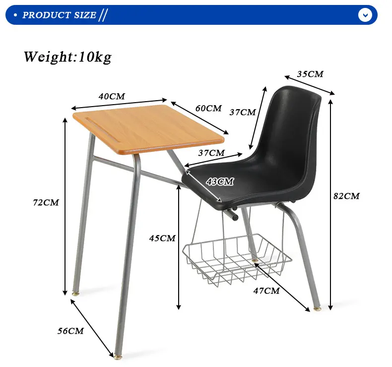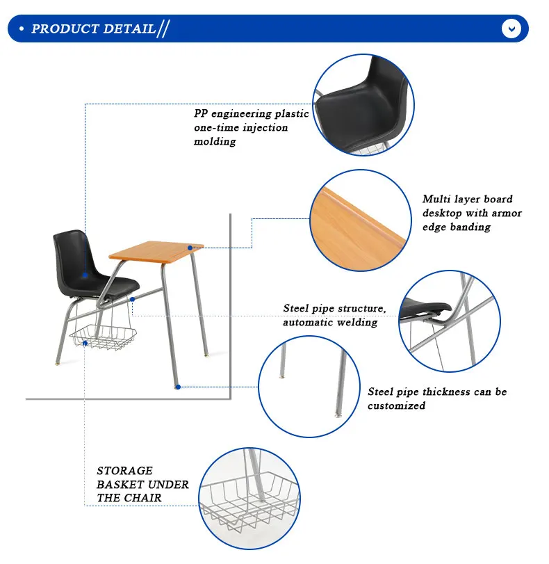 School Furniture Metal Plastic Study Table Chair Meeting Room Chairs Student Training Chair With Writing Pad