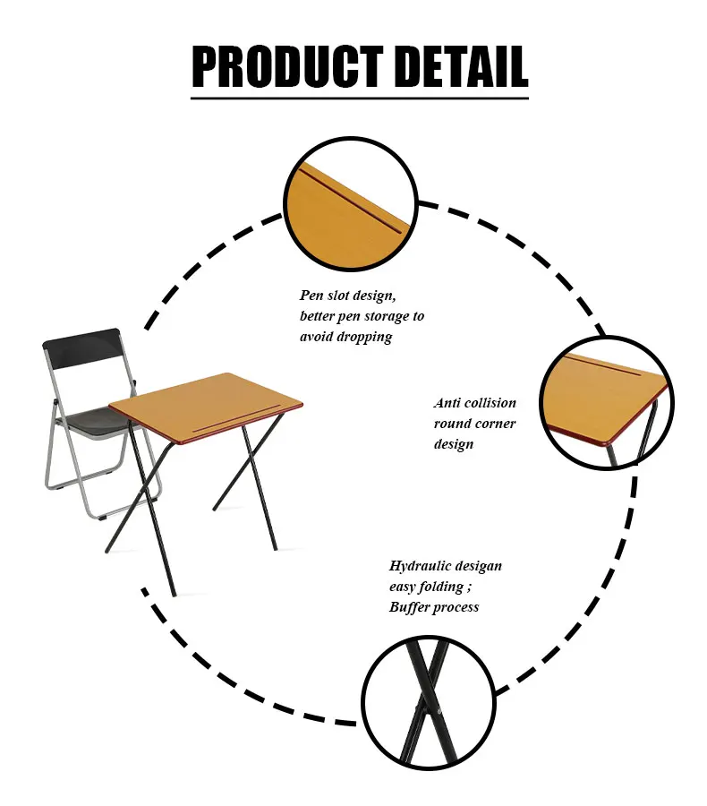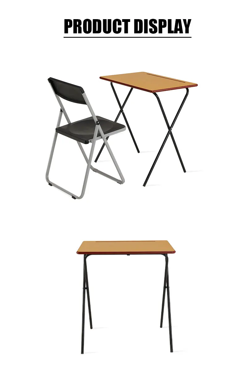 School Furniture Rectangular Study Desk and Chairs Foldable Wooden Exam Tables in Classroom for Students