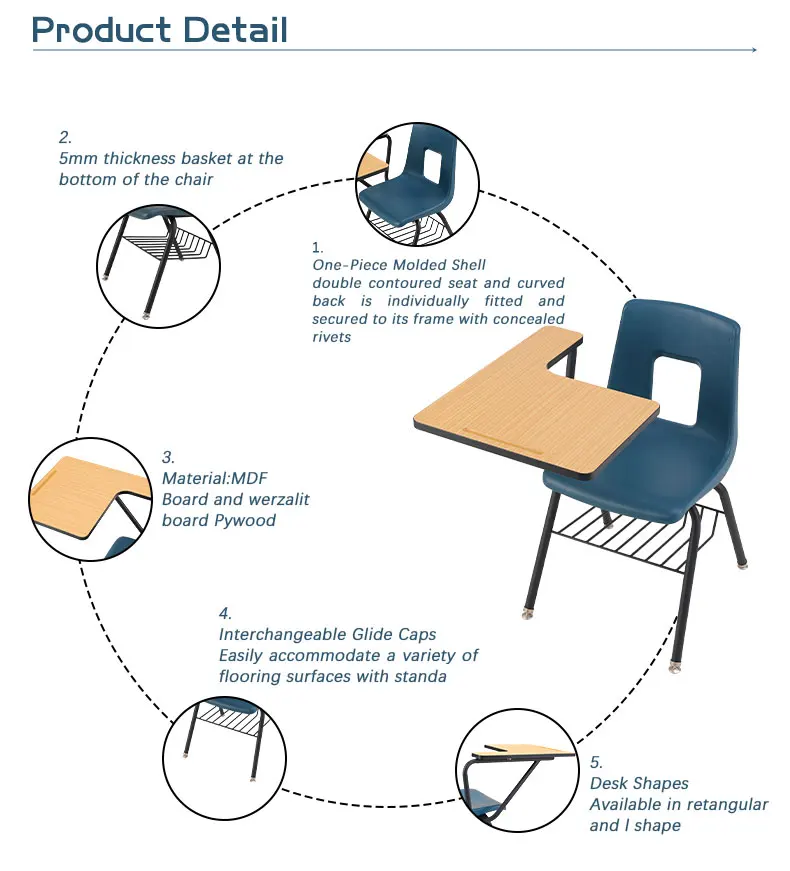 School Furniture University Adult Learning Chair Plastic Training Room Chair MDF Student Chair With Writing Pad