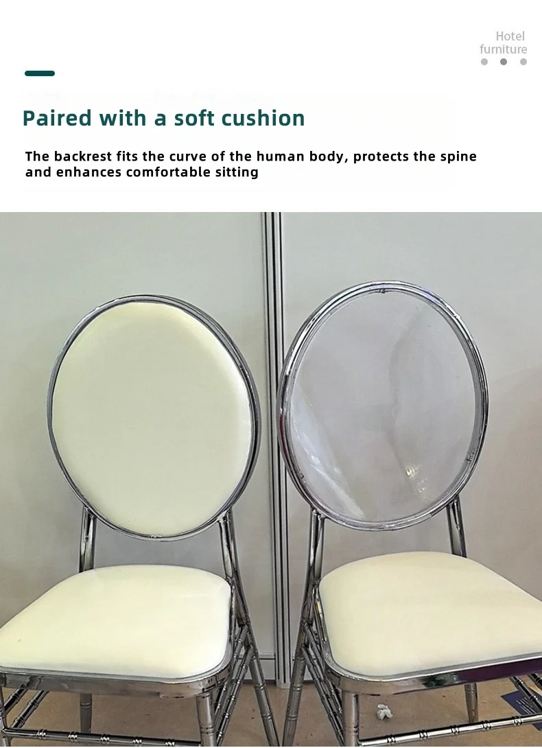 Stainless Steel Dining Chair Stackable Hotel Restaurant Event Banquet Metal Leg Clear Back Chiavari Multifunctional Garden Chair