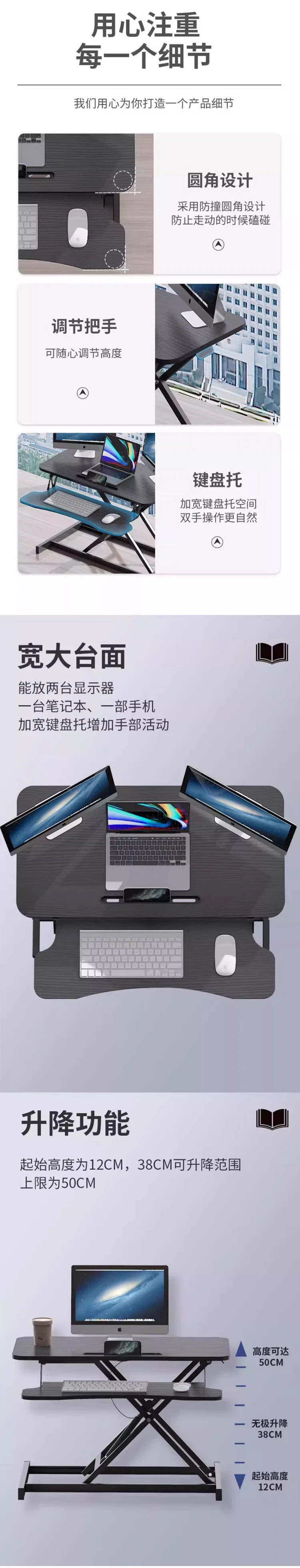 Standing Office Desk Lifting Work Table Computer Desk Folding Table Pneumatic Desk Elevated Laptop Table