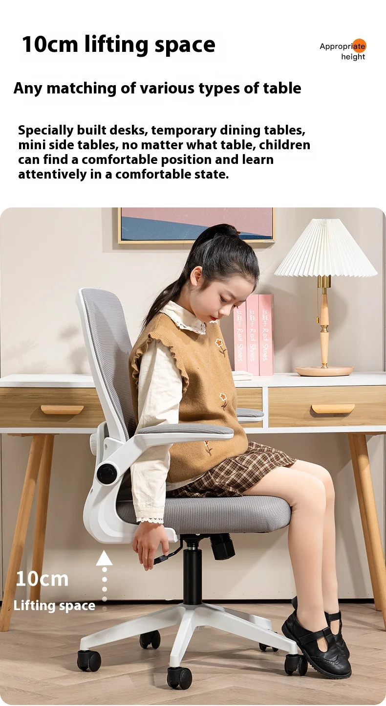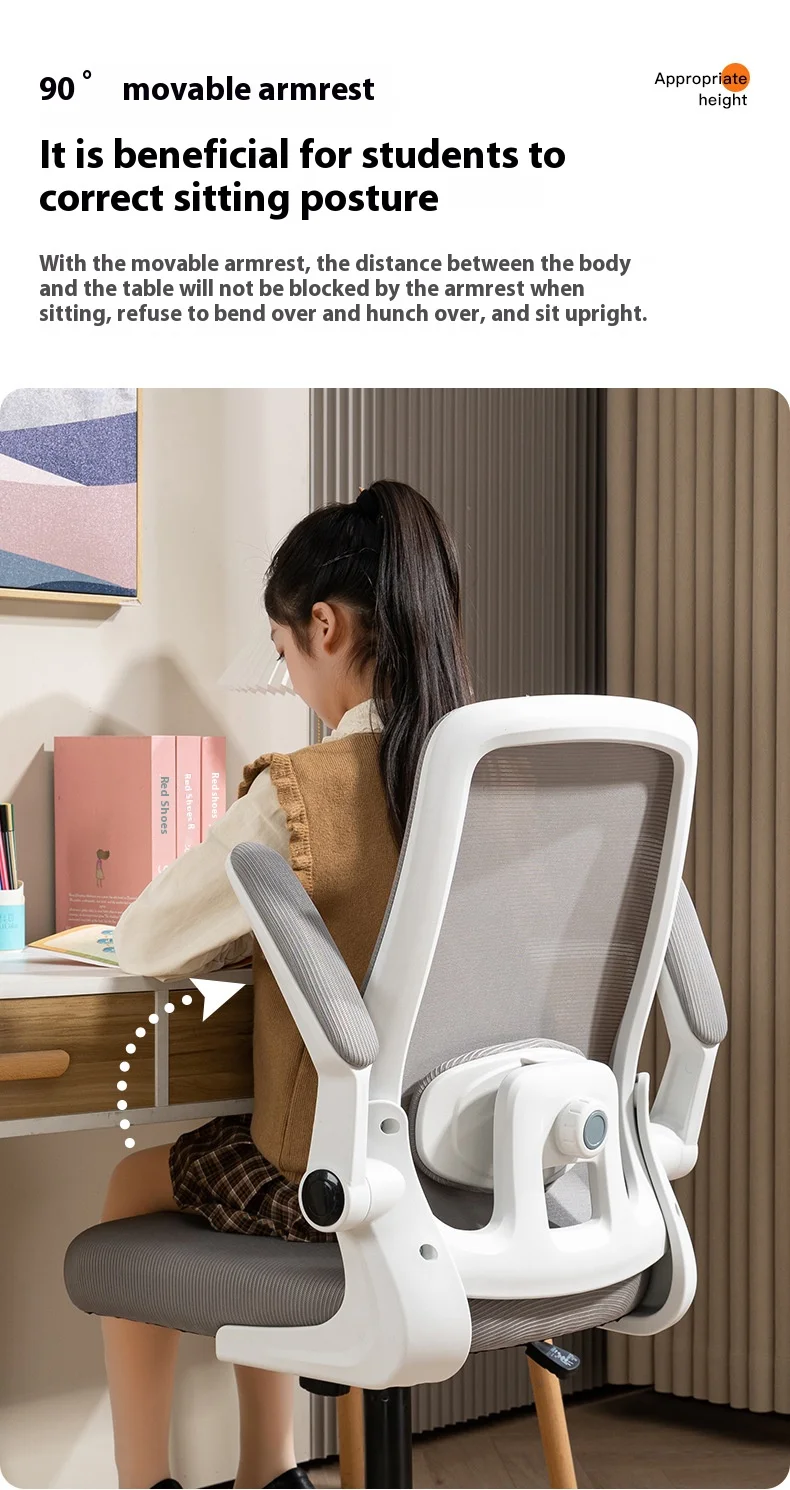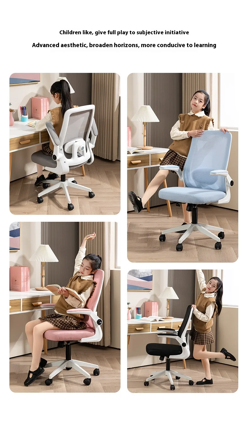 swivel wheel computer chair ergonomic students mesh office chair with flip up armrest