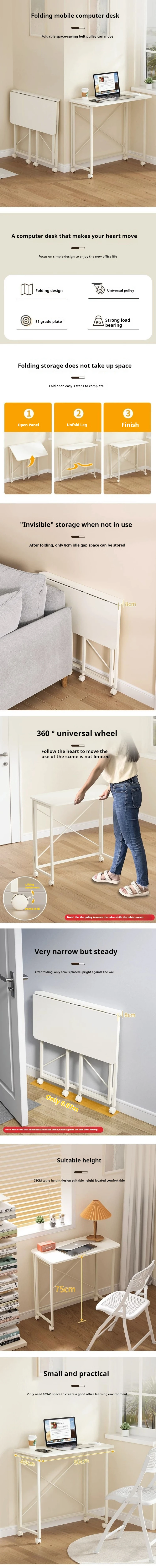 Computer Desk Foldable Office Desk Portable Space-saving Study Table