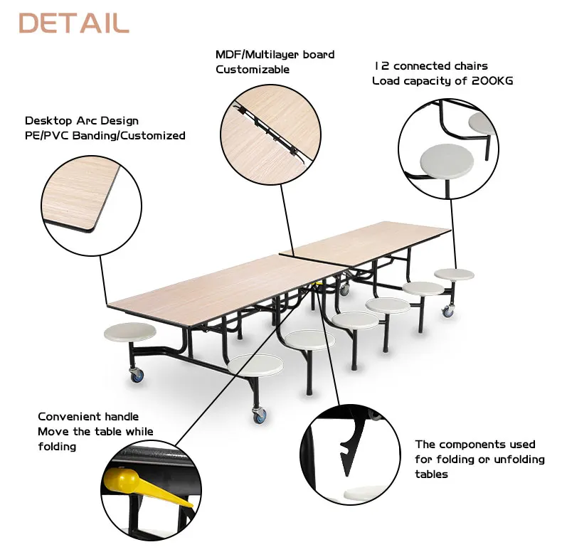School Canteen table and chair set 12 Seats Rectangle Foldable Dining Tables Wooden Cafeteria Canteen Table and Chair